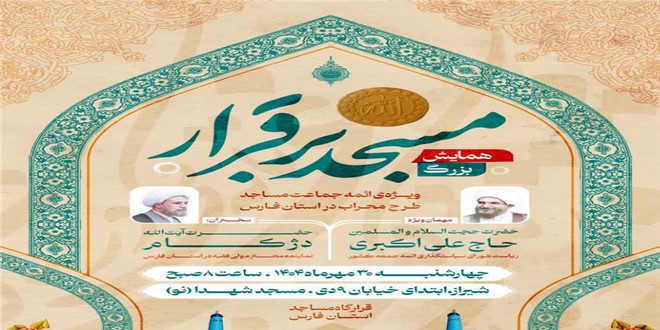 دبیر قرارگاه راهبری مساجد استان فارس تأکید کرد: «در این همایش، طرح محراب توسط حجتالاسلام والمسلمین «محمدجواد حاجعلیاکبری»، رئیس شورای سیاستگذاری ائمه جمعه کشور و رئیس قرارگاه ملی مسجد، تشریح خواهد شد و نقش مساجد در این طرح تبیین میشود.»
